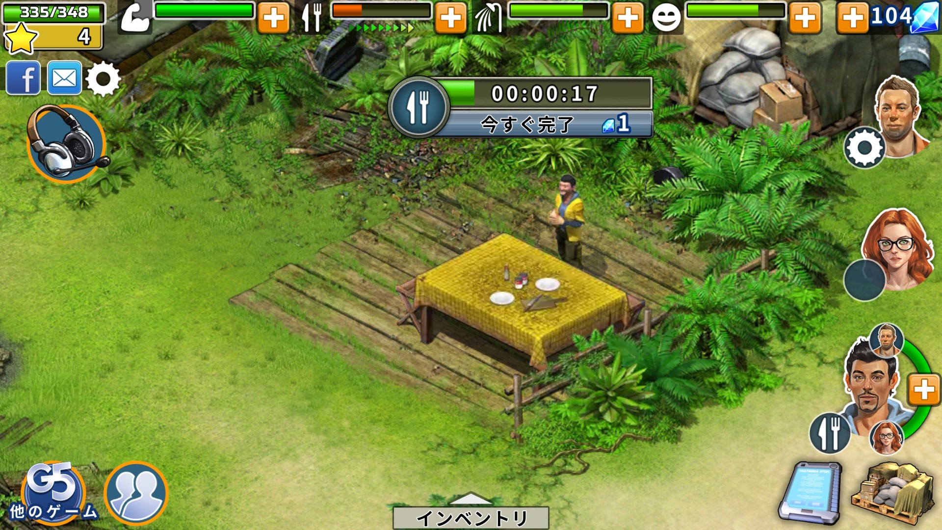 彼らはそれぞれ「スタミナ」「空腹度」「快適さ」「気分」のゲージを持っていて、それらが低下すると行動能力が落ちてしまいます。画面上にある各キャラクターのゲージをまめに確認しましょう。