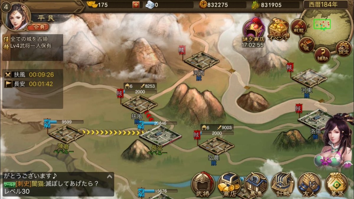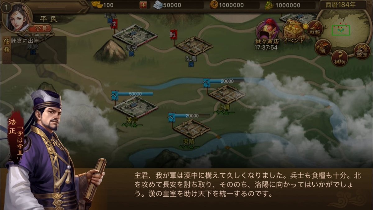 三国志の時代の中で、領地を広げていく合戦シミュレーションアプリ、