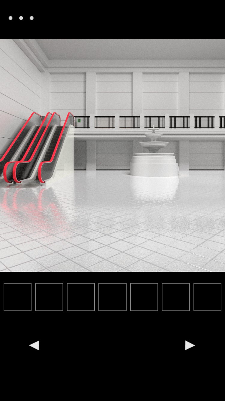 どうやら2階付きのホールのようで、エスカレーターや黒い水が溜まった噴水があり謎のモニュメントがいたるところに置いてあります。