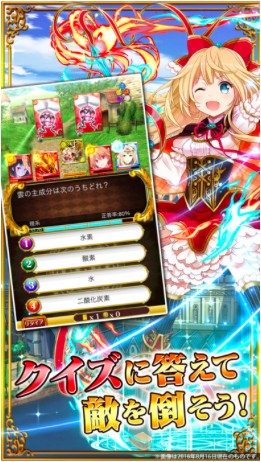 クイズに答えながら敵と戦い、クエストを進めていくクイズRPG『魔法使いと黒猫のウィズ』。ファンタジーな世界観の中、壮大なストーリーを楽しみながらクイズに答えていきましょう。魔法カードでパーティを組み、バトルになったら属性に合わせたクイズジャンルを選択します。属性は、炎・水・雷の3つがあり、クイズに正解すれば、選んだ属性のカードが敵に攻撃を仕掛けることができます。カードは合成によって強化していくことができるので、お好みのカードをどんどんパワーアップさせていきましょう。他のプレイヤーとオンラインでクイズ対戦もできるアプリですから、たくさんのプレイヤーと知識を競ってみてください。