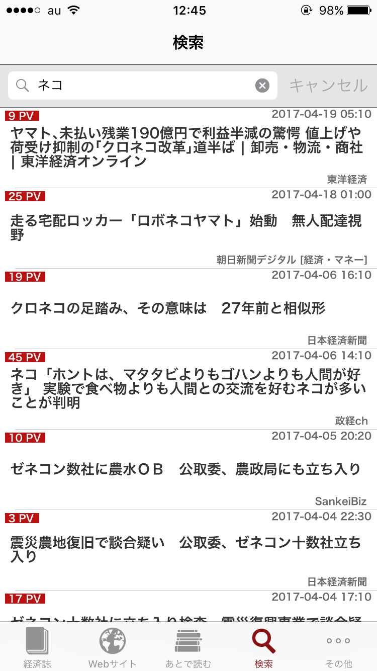 経済誌だけでなく、ネットのまとめサイトを記事として抽出してくれるので、一つの話題でも経済誌でしっかりした内容を確認することもでき、まとめサイトでネットの人たちの意見を合わせて読むことも可能です。