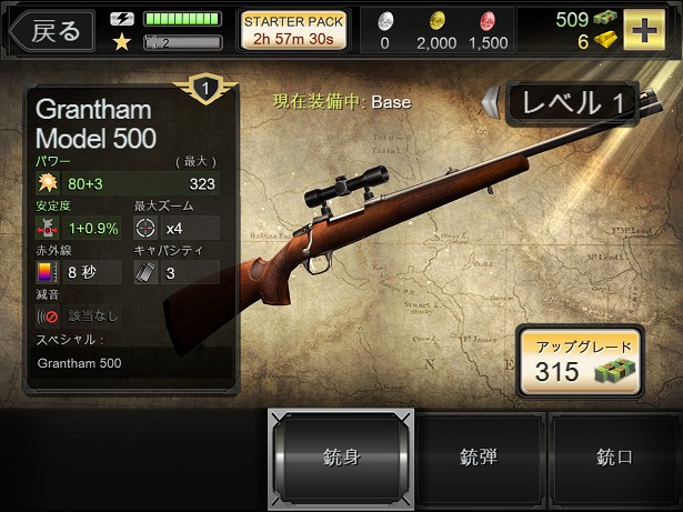 ゲームを進めていくと使っている銃の威力を強化したり、より難しいミッションをこなしていけます。