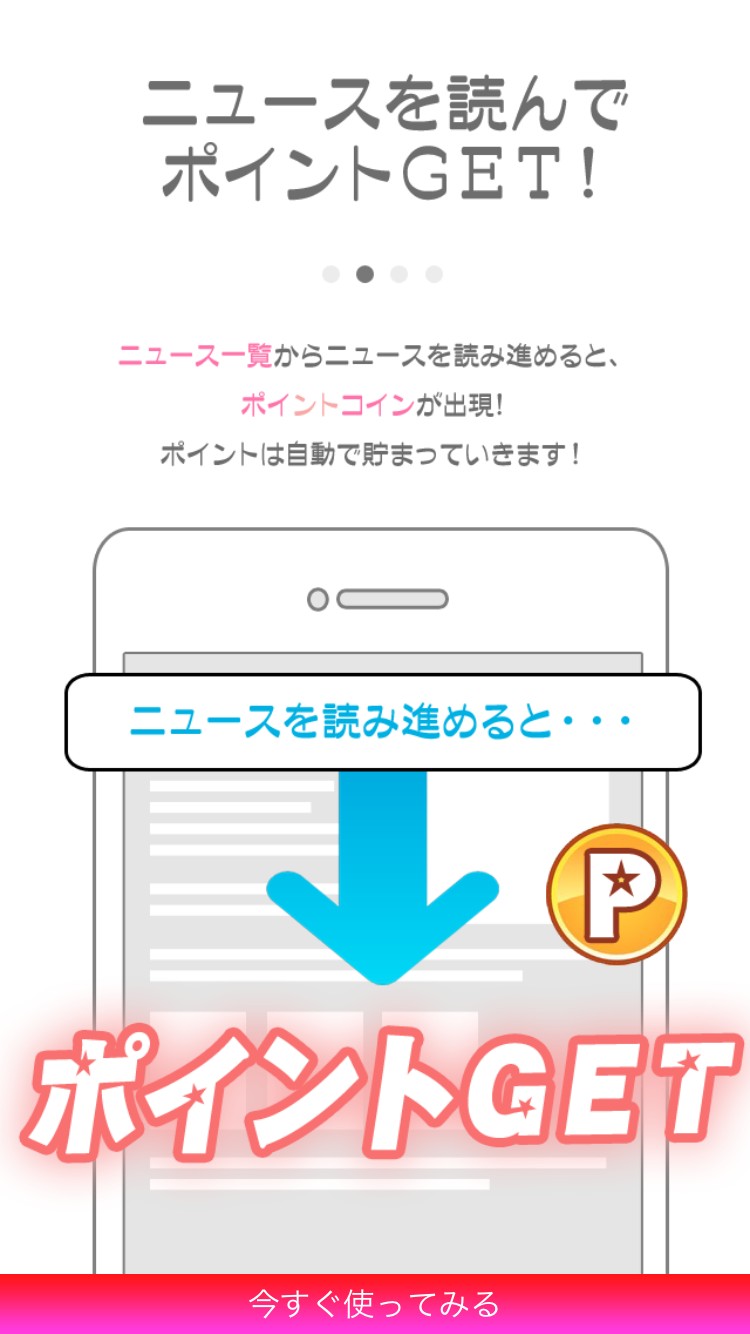 という、アプリ名通り、ニュースを読んでポイントが貯まるアプリです。