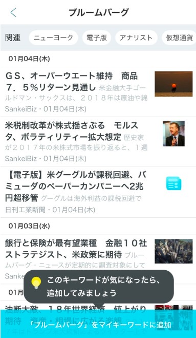 さらには、キーワードに関連するワードも、自動で選出して表示してくれるので、話題のニュースについてより深く知っていくことができるでしょう。