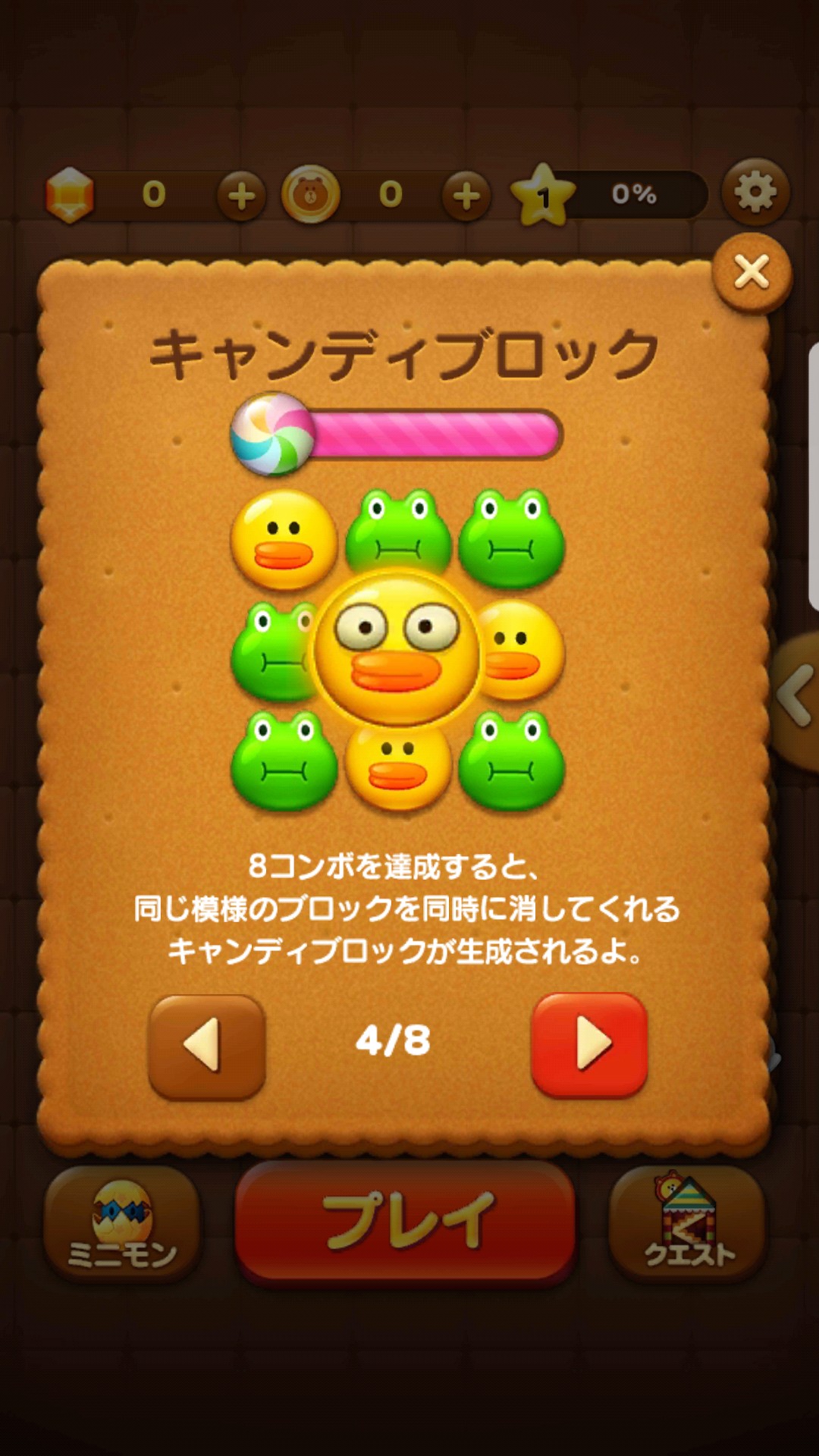 キャンディブロックができて、使うと同じ模様のブロックが同時に消えます。