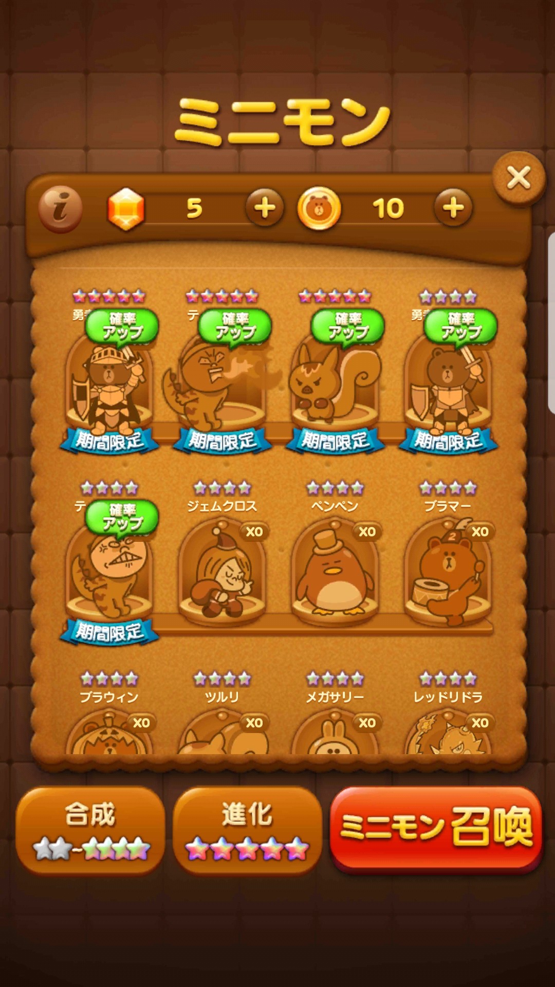 「プラチナム」はルビー35個を消費して星3〜5のミニモンを召喚できます