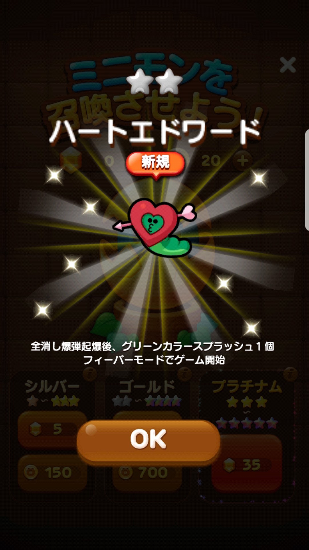 「ゴールド」はルビー15個とPOPコイン700を消費して星2〜4の