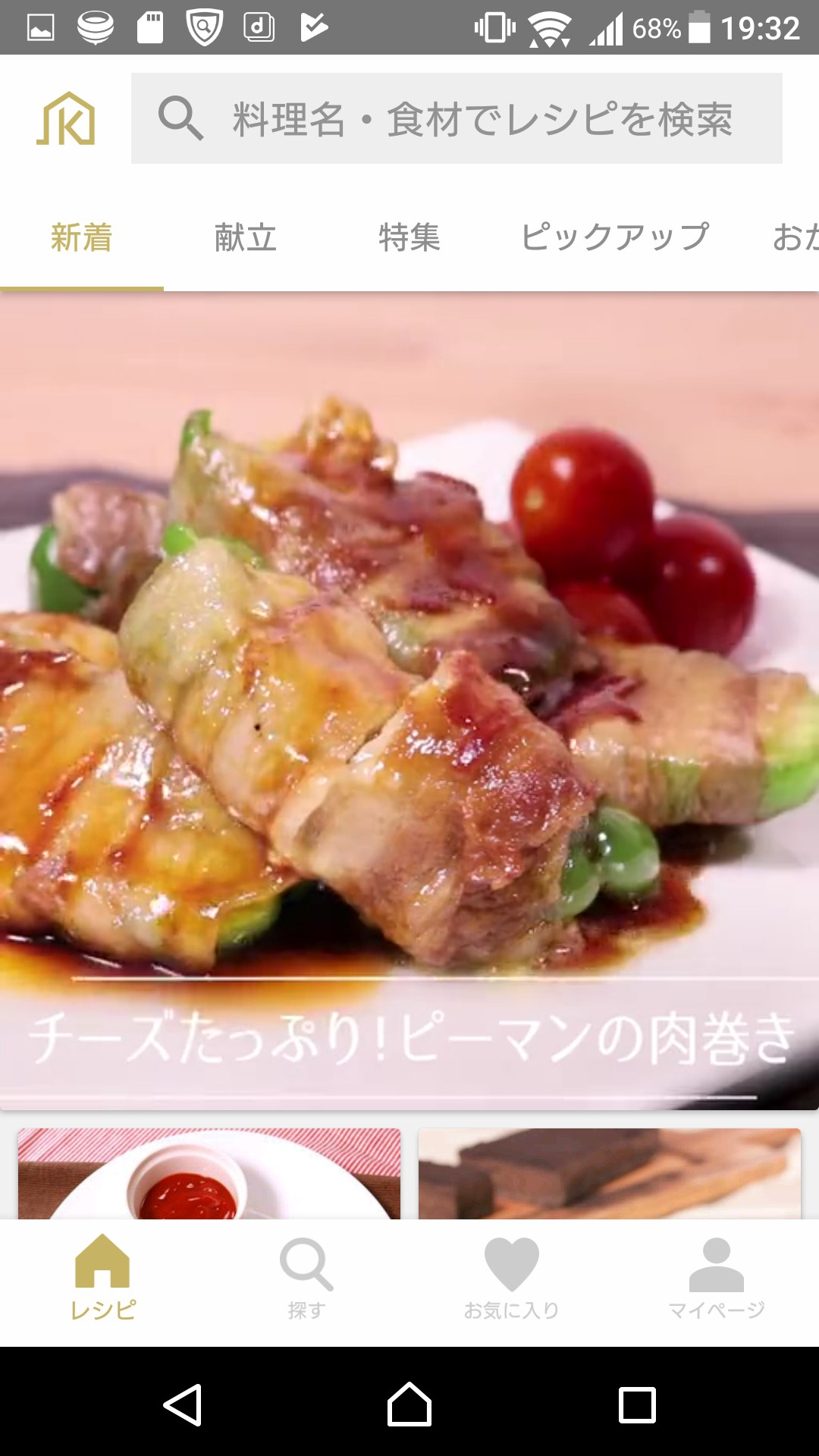 料理名や材料を入力して、好みのレシピを検索することもできます。