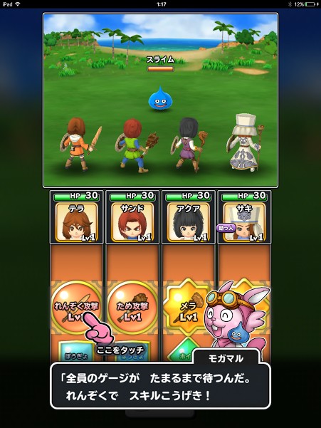 スキルは丸いゲージがたまればうてるようになり、タップする必要があります。