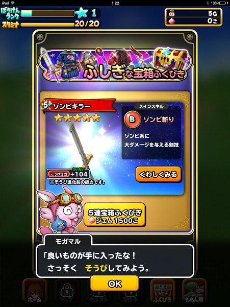 300個で一回まわすことができ、連続でまわすことでレア度の高い武器が入手できるなどの得点があります。
