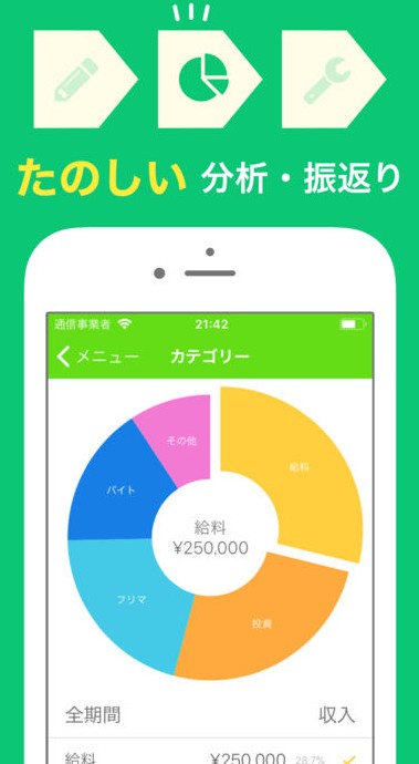 収入と支出の分析機能が便利