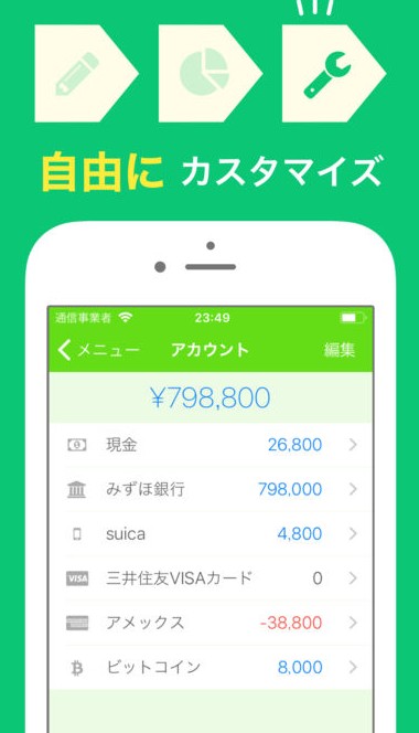 シンプルイズベストなデザインと機能で愛されている「Moneybook」ですが、便利さを追求した家計簿アプリの機能は自由にカスタム可能になっています。