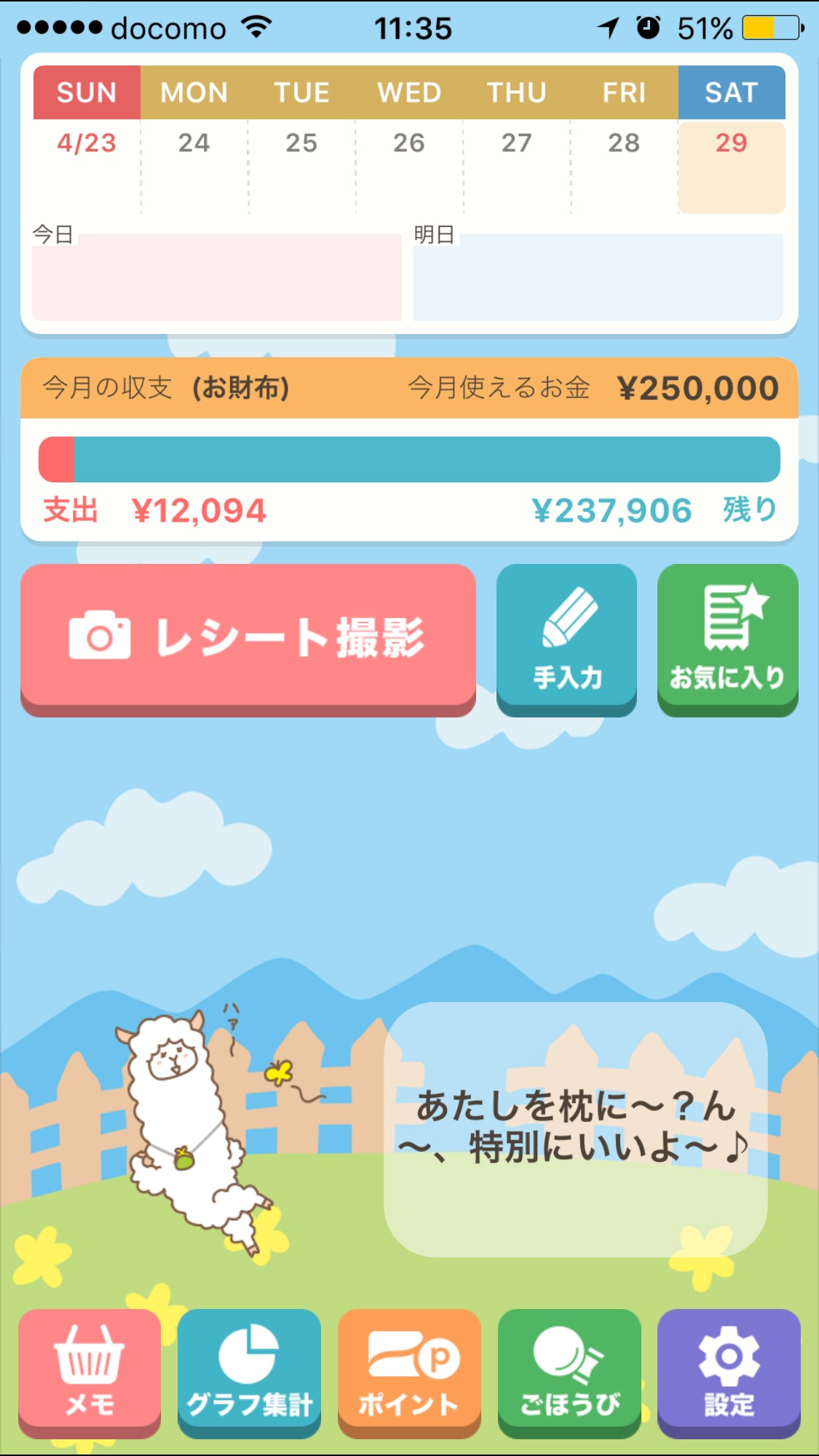 可愛いアプルパカのアイコンで親しみが沸くお小遣いアプリ「家計簿レシーピ!」は、メディアなどで紹介されたことのある人気アプリです。