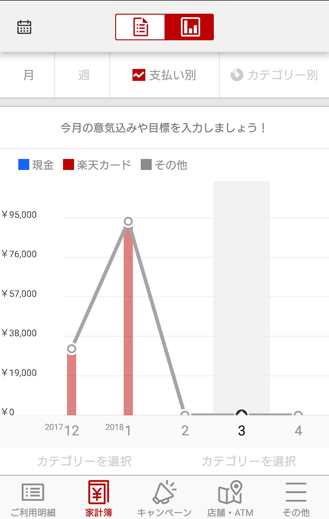 「楽天カード」アプリは、クレジットやポイントカードのデータ管理だけではなく、一般的な家計簿アプリとしても利用できます。