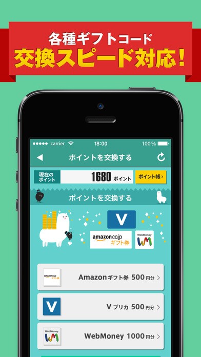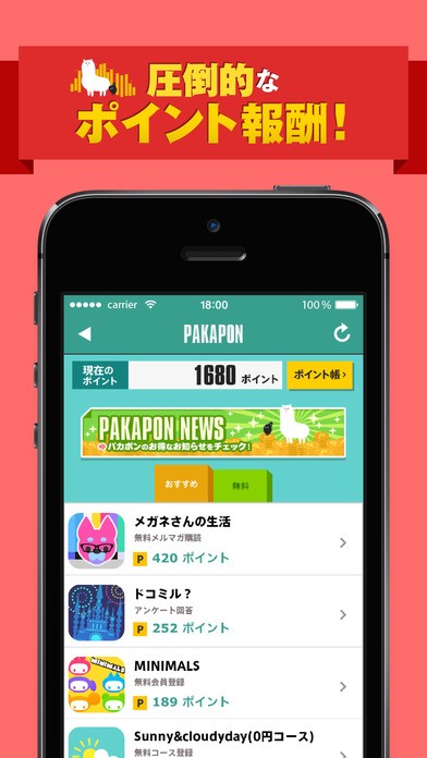 ポイントの還元率の高さこそ、神アプリ「パカポン2」最大の特徴です。なんにも残らないゲームやアプリに嫌気がさしている人は、「パカポン2」でお小遣いを貯めていくことをオススメします。かわいらしいアルパカのデザインも合わさって、ついつい起動してしまいたくなる神アプリとなることでしょう。