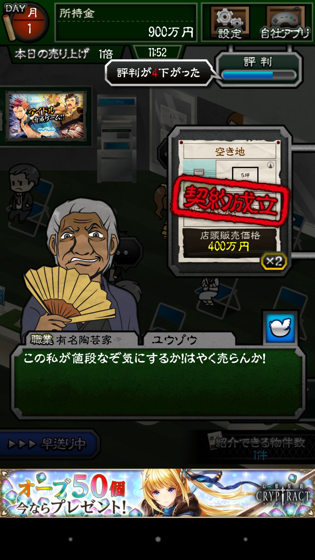 物件を売るノルマは1日5件で、ちゃんとノルマを守っていると週末に良いことがありますよ♪