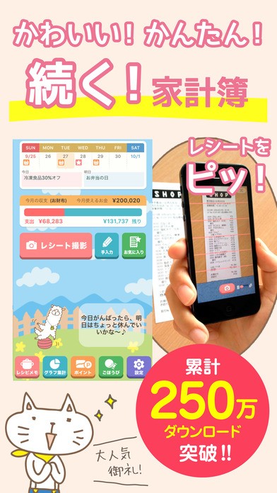 これまで家計簿を付けたことがないという方も、可愛いキャラクターと一緒に楽しく手軽に家計簿を付けてみてはいかがでしょうか。