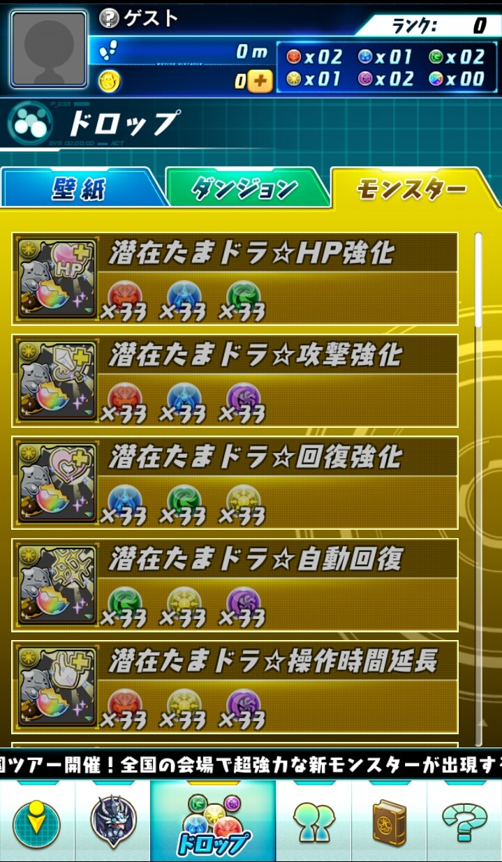 ドロップで交換できるダンジョンは主に曜日ダンジョンで、モンスターとしては、ホノりん(攻撃+99)などの強化モンスターが交換できます。