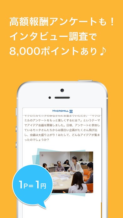 神アプリ「マクロミルアプリ」最大の魅力は、いっきに高ポイントが狙える案件の存在でしょう。8000を超えるポイントが手に入ることもあるので、がっつりとお小遣いを稼ぎたい人にはうってつけのアプリとなります。