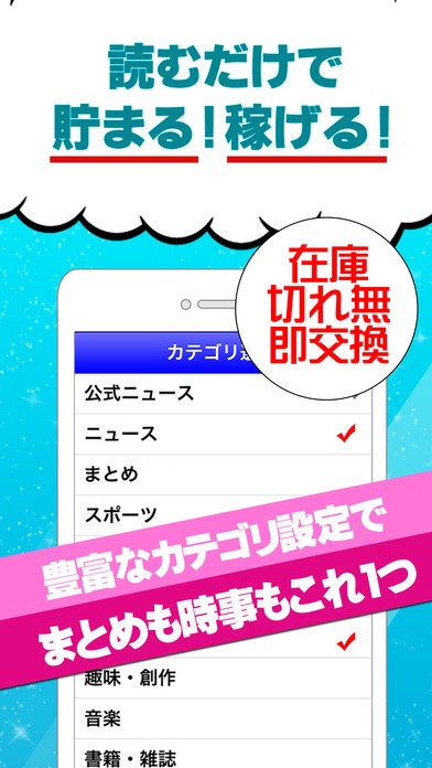 ニュースをサクサクと読める人は、知らず知らずのうちにたくさんのポイントを貯めていけるかもしれません。そんなポイントを換金する瞬間には、きっと想像以上にお得な気分を味わえることでしょう。アプリでお小遣いを得る快感は、ぜひ1度体験しておきたいものですね。