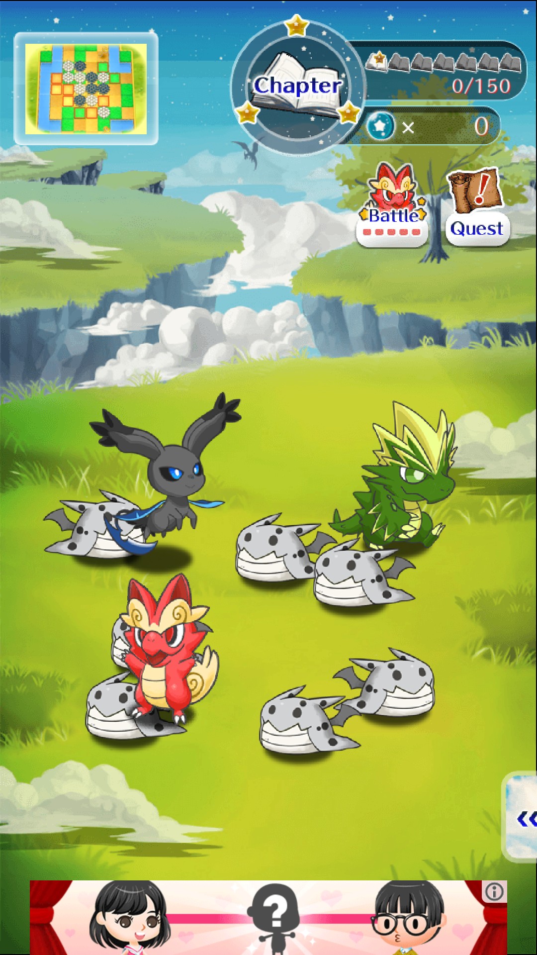 赤いドラゴンのコマドランを操って、周りに集まってくるモンスターをタップで倒して経験値を集めていきます。