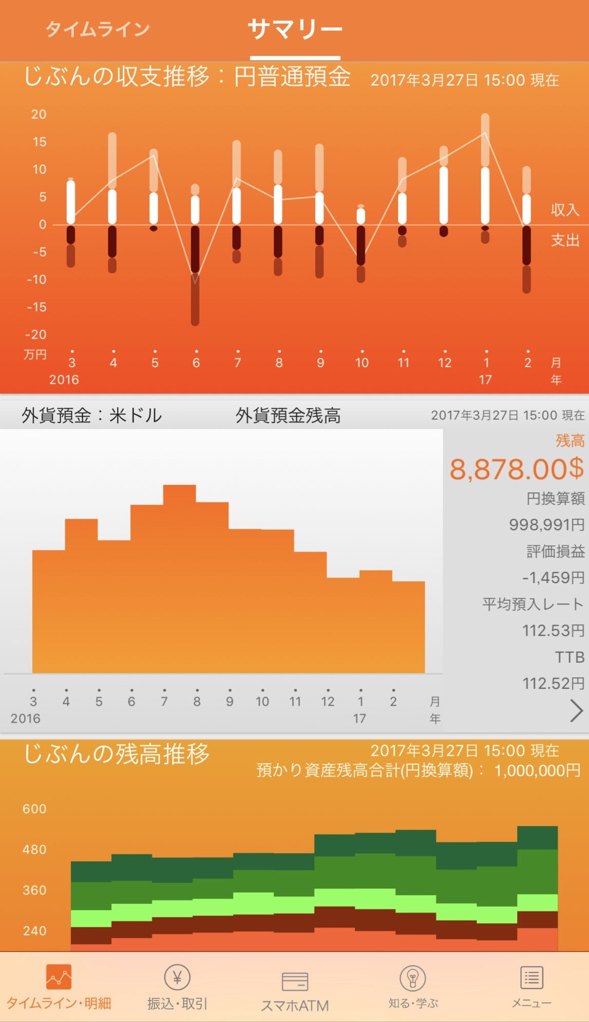 「じぶん銀行」を見てきましたが、資産状況を確認し、取り引きもでき、知識も得られるとなるとかなり便利なアプリなのではないでしょうか。