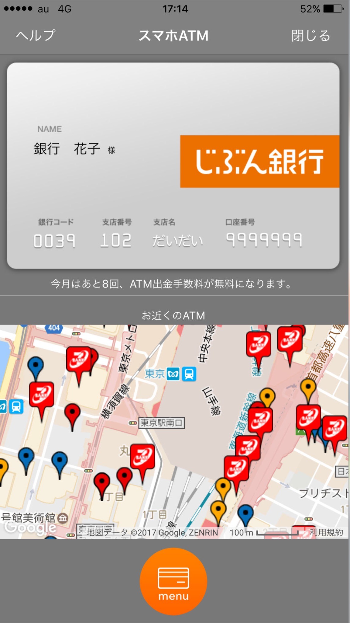 「じぶん銀行」では振り込みや取り引きができるのはもちろんのこと、「スマホATM」という機能があります。これは、キャッシュカードの代わりにスマートフォンアプリを使って現金の入出金ができるサービスとなっています。
