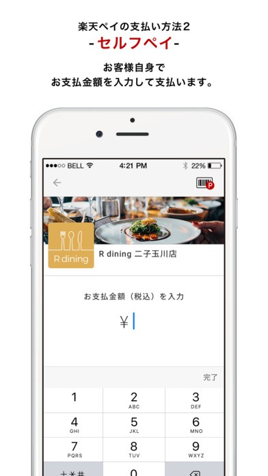 セルフペイを選択すると、アプリ上で支払うお店を選択し、自分で支払う金額を入力して支払いできます。