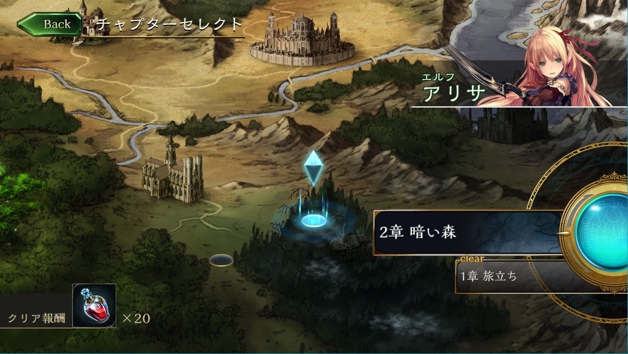 ゲームアプリをダウンロードしてスタートするとまずチュートリアルをプレイすることになる。ここでは登場キャラクター: アリサに関するストーリーを楽しみながらゲームシステムについて覚えていく作りになっている。