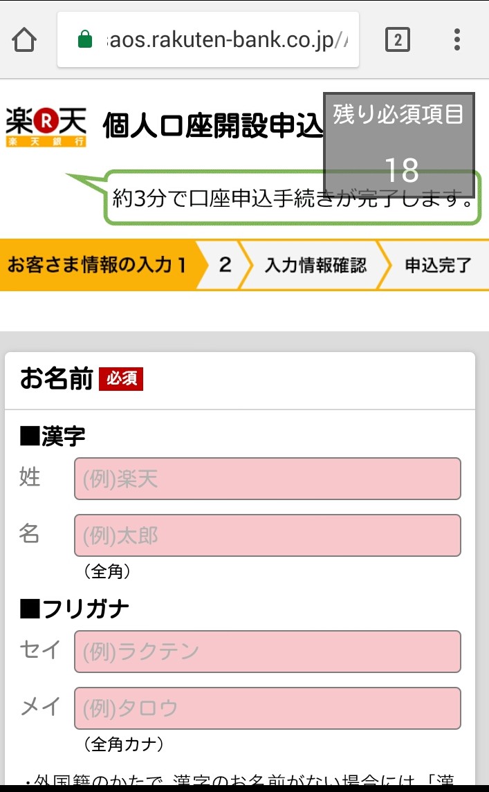 銀行口座の開設と聞くと手間がかかるイメージがありますが、楽天銀行アプリを使うと必要事項を入力するだけで簡単に口座を開設することができます。