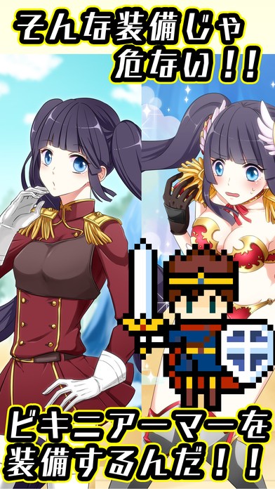 このゲームの趣旨としてはそんなけしからビキニアーマーを10人以上のかわいいアニメ風イラストのキャラクターに着せていくという素晴らしいもので勇者はその装備を購入するために、