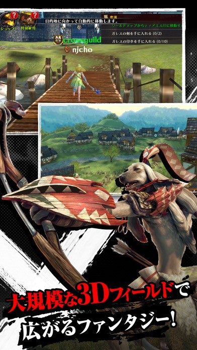 フィールドは広く何もしらない方はゲームを進めるにもどこへ行っていいか迷うはず。そんなあなたのためにオート移動が用意されています。クエストガイドをタップしておけばその場所へ自動で移動してくれますから、