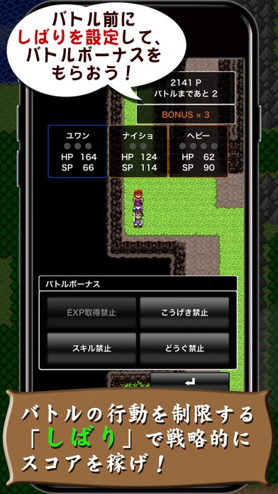 このポイントをいかに減らさないかを競うゲームになっているのです。例えば仲間を雇ったり、街の店でアイテムを購入したりするとポイントは減ってしまいます。逆に縛りをつけるとポイントが増えていく仕組みです。