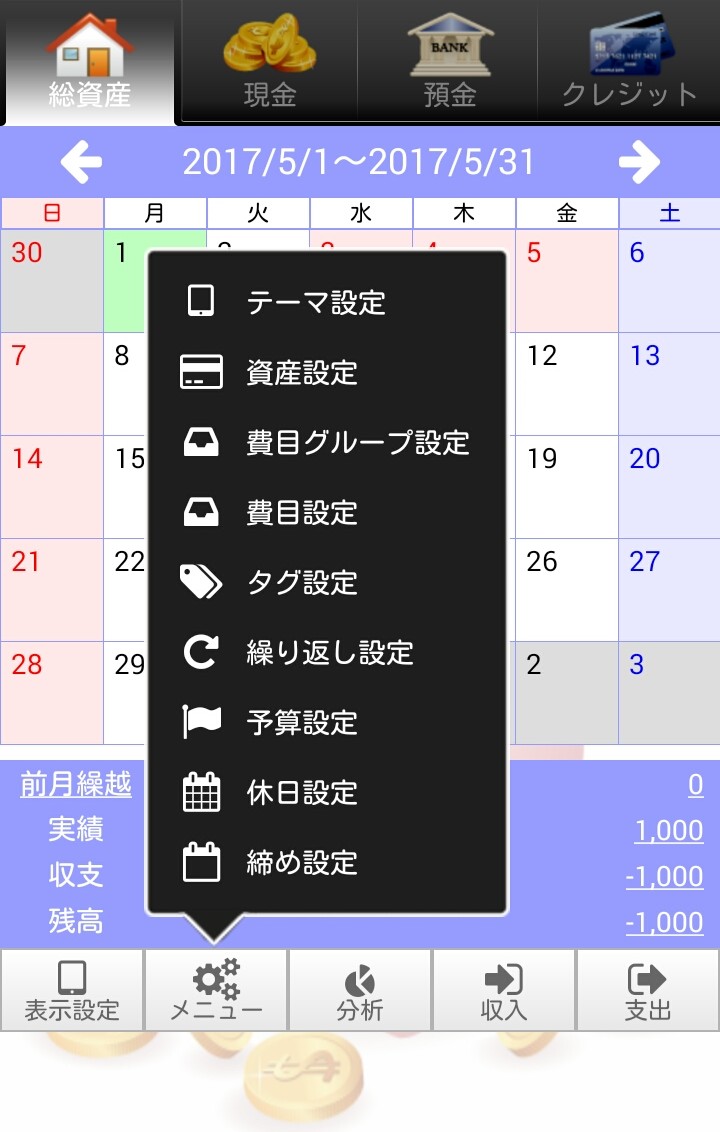 「貯まる家計簿」は、設定項目が豊富にあるのも特徴です。