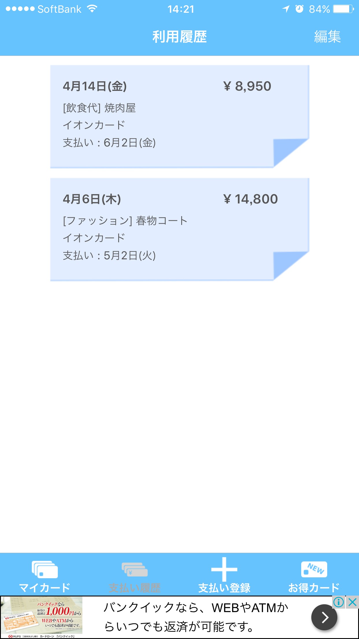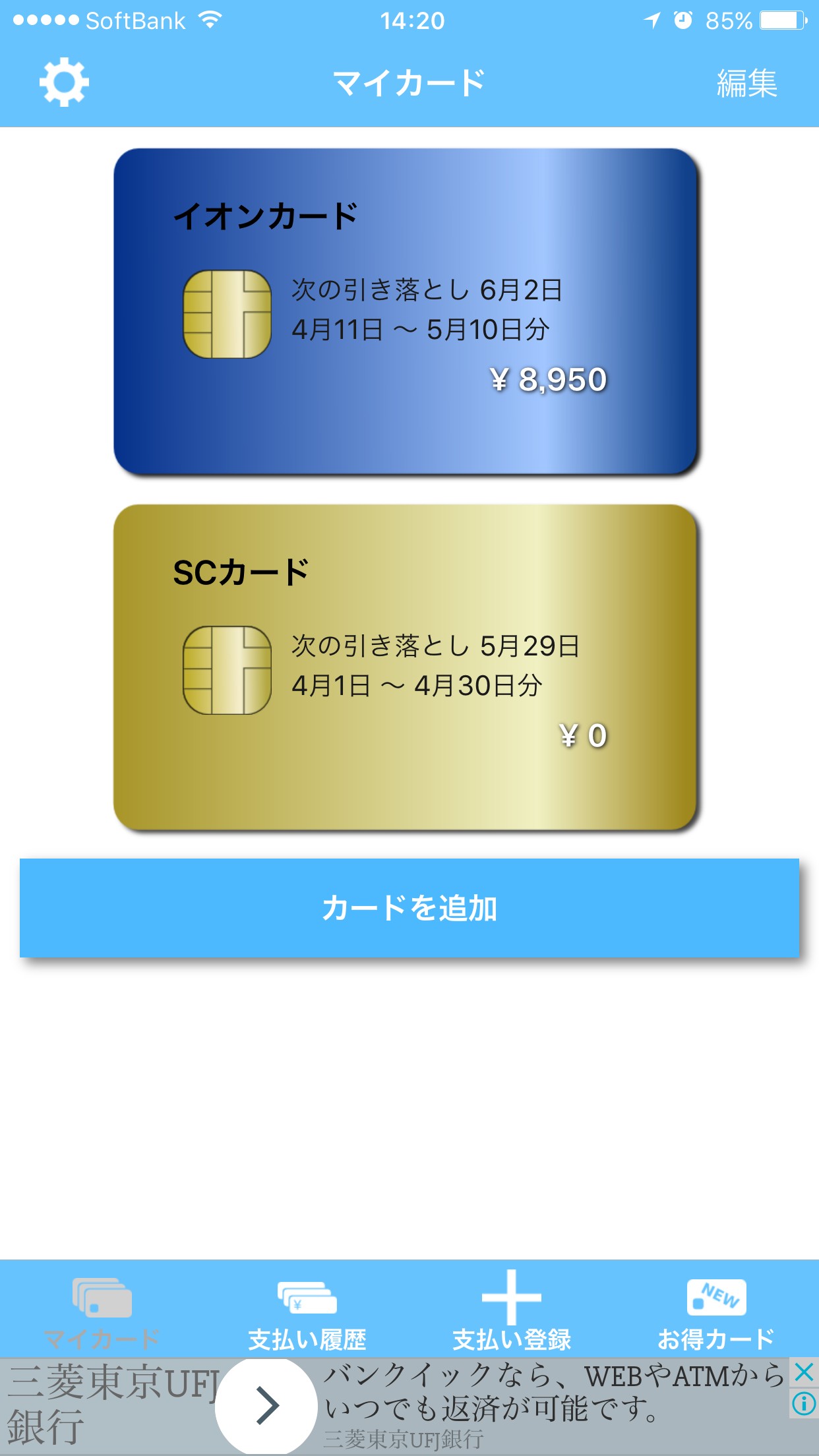 カードを複数ご利用のかたには使ってもらいアプリです。是非お試しください。