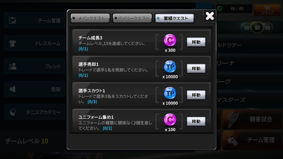 クエストは、『メインクエスト』『デイリークエスト』『業績クエスト』の3つがあります。