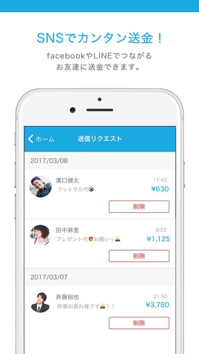 いつでもどこでも、簡単に無料で送金できるアプリです。