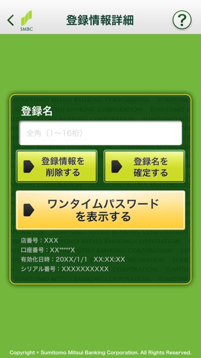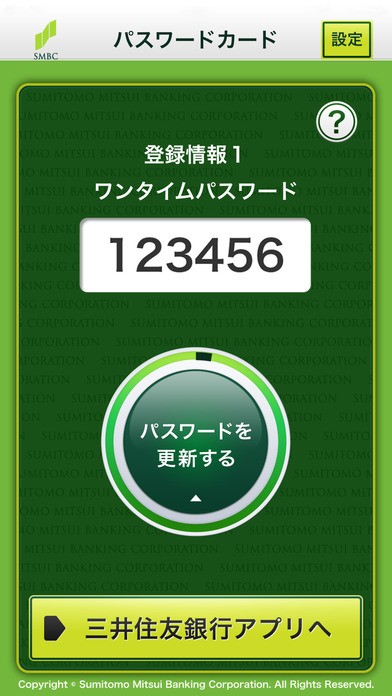 インターネットバンキング『SMBCダイレクト』のワンタイムパスワード生成アプリです。