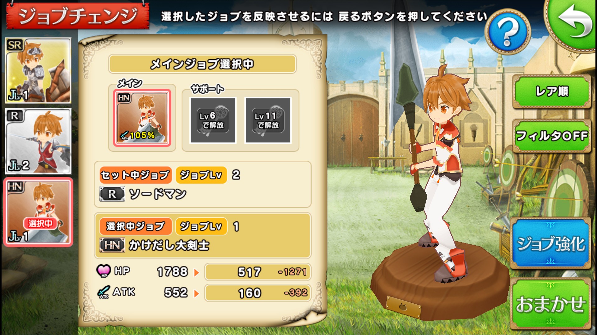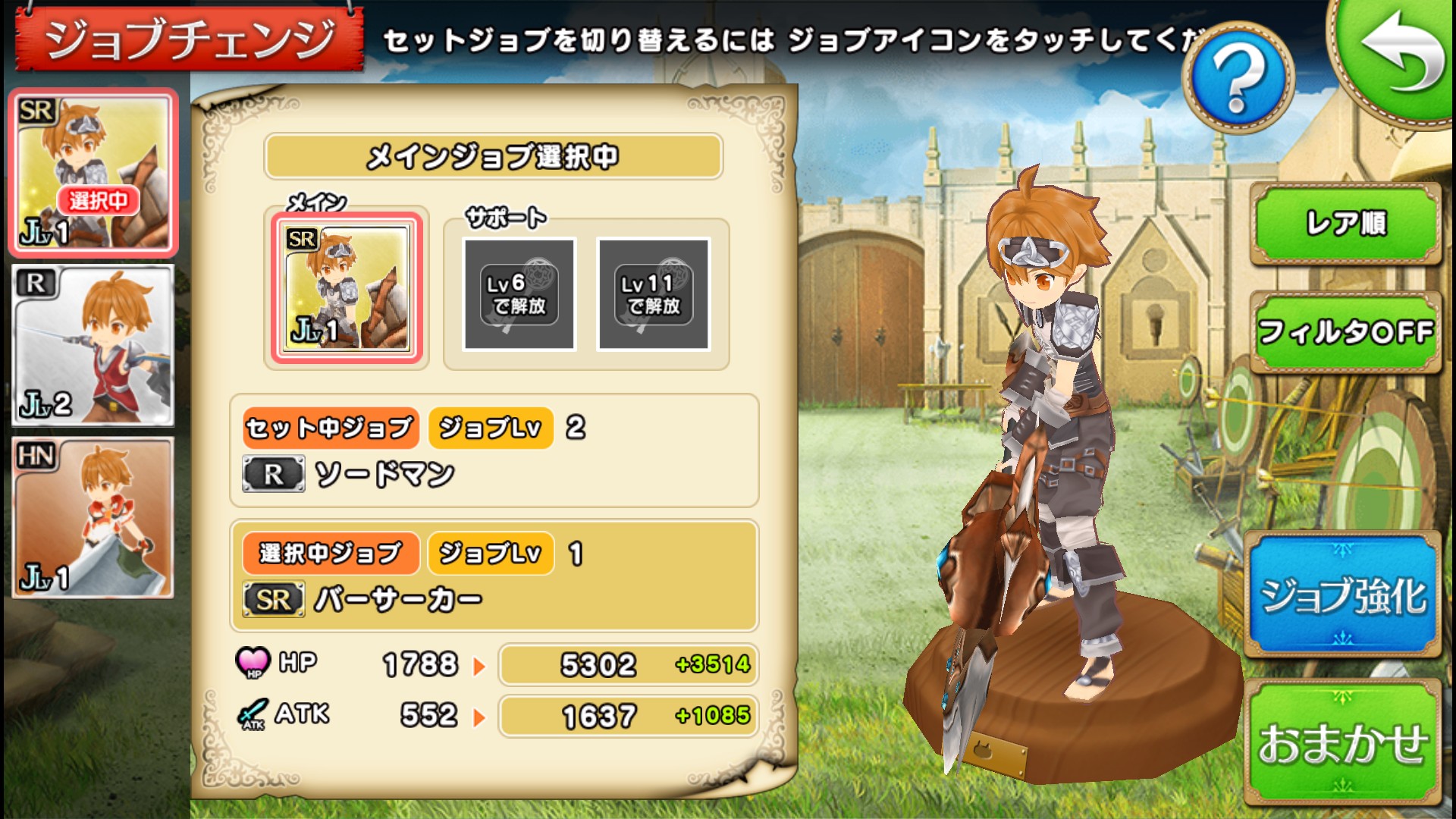 そのジョブのレベルやレア度によってステータスが大分変わります。