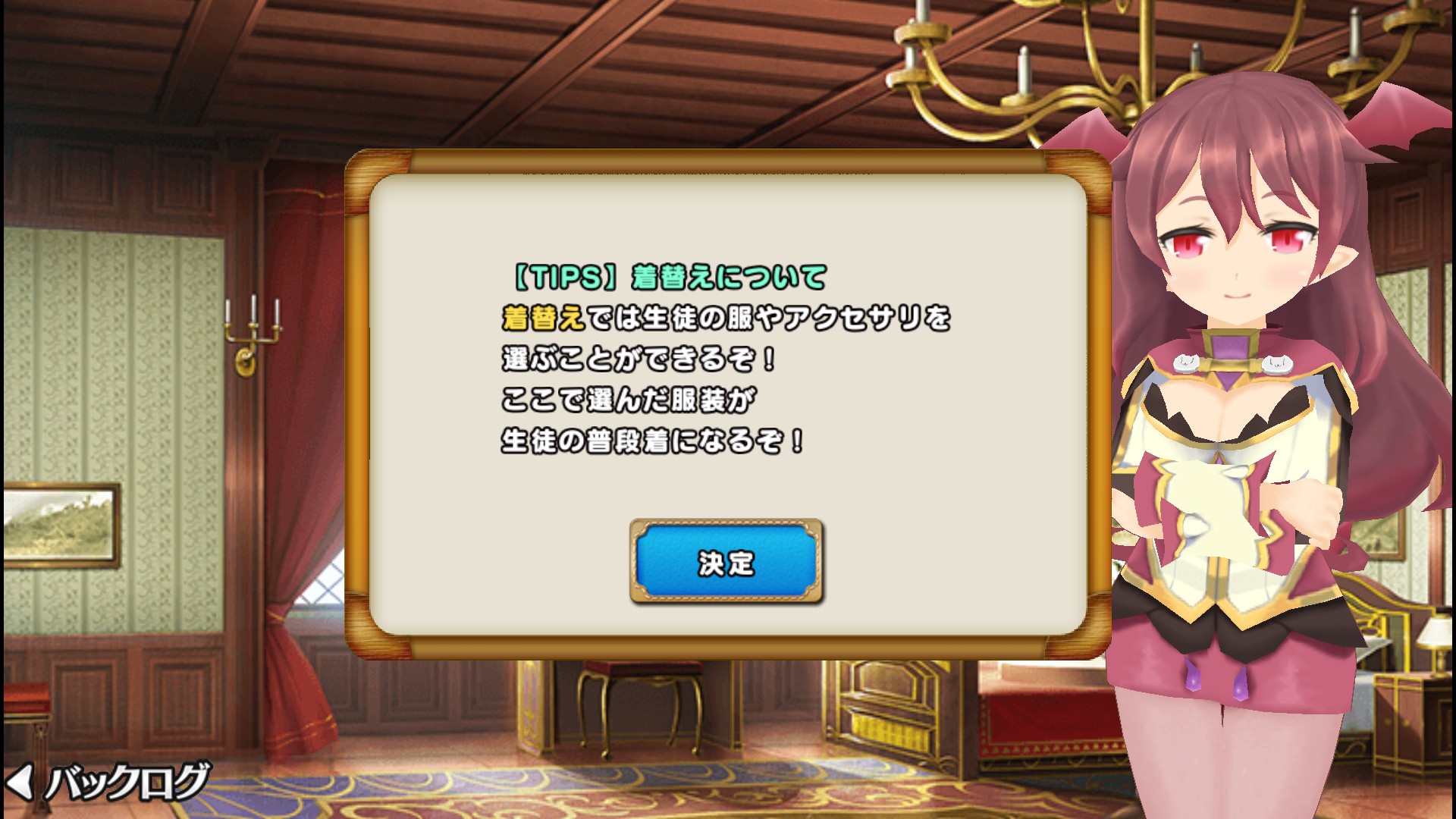 着替えでは生徒に着せる服やアクセサリーを選ぶことができ