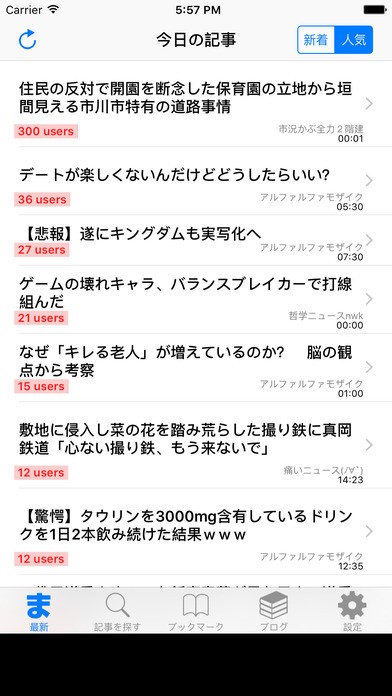 下のタブにある“最新”・“記事を探す”・“ブックマーク”・