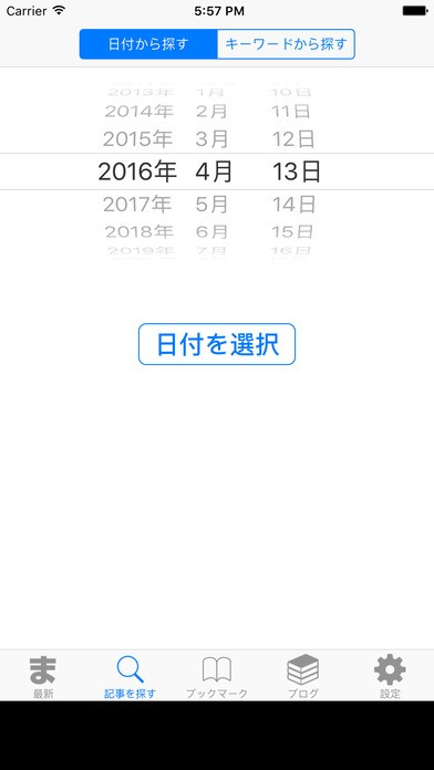 “日付から探す”をタップすると、日付を選択して、