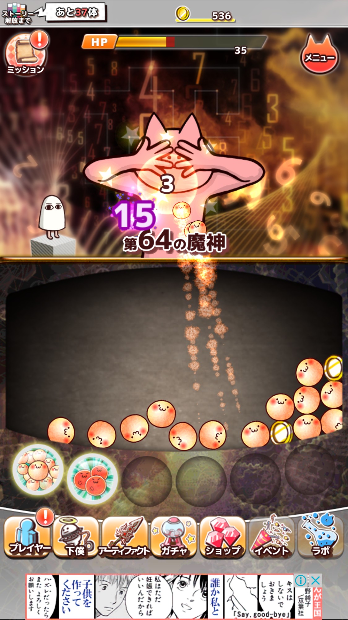 ▲タップした瞬間魔人に豪快にアタックするタマちゃん!破裂した瞬間、星(キンタマウム)が弾けた・・※ライター個人撮影