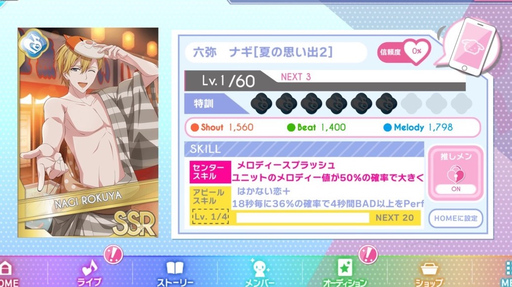 他にも逢坂壮五[夏の思い出2]などはコンボ20回毎に36%の確率で5秒間BADをパーフェクトにしてくれるというとんでもない性能で人気です。