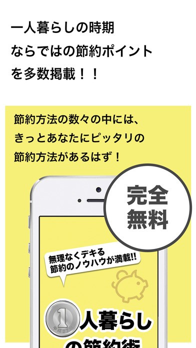 「1人暮らしの節約術」は、一人暮らしの節約術がたくさん載っている情報アプリです。家計簿アプリではありませんが、家計管理の参考になる情報が豊富に載っています。食費・家賃・光熱費・雑費の節約・収入を増やす・節約の裏技などのカテゴリー別に掲載されているので、自分に必要なカテゴリーを選択して読んでみましょう。