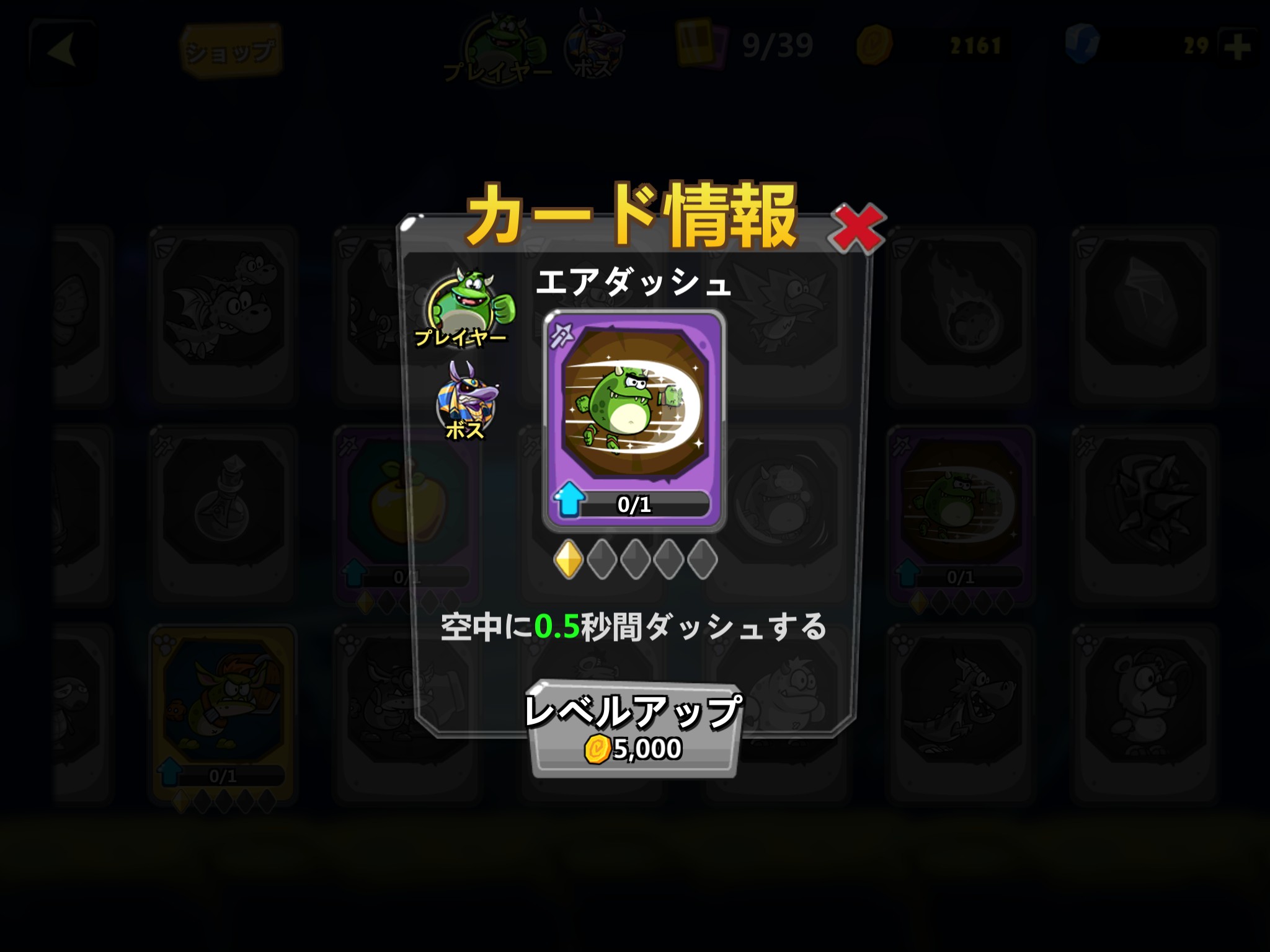 プレイヤー 空中に0、5秒間(レア度1)ダッシュする