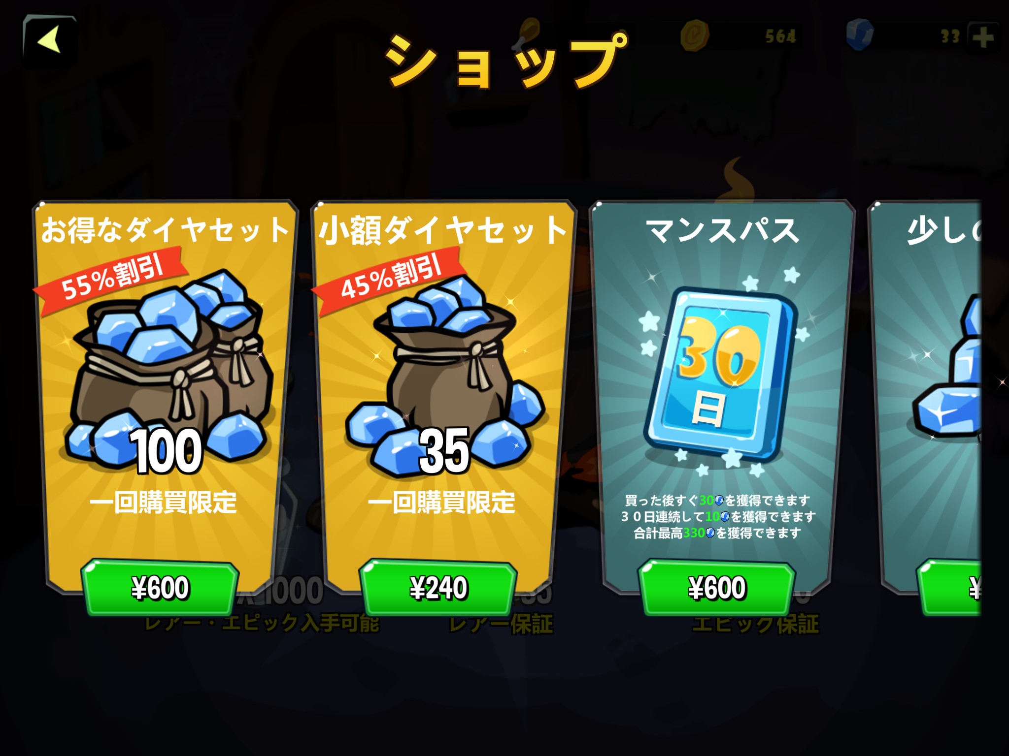 「ダイヤショップ」(課金要素です、ゲームに課金したくない人は飛ばして読んでください)