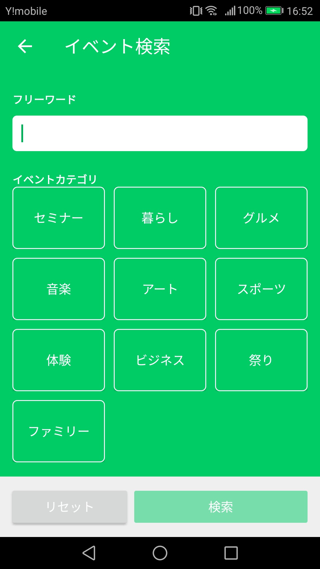 アプリ下部には、イベントを地図上から探す機能、フリーワードやカテゴリーでイベントを絞り込む機能も用意されており、より便利にイベントを探すことも可能です。