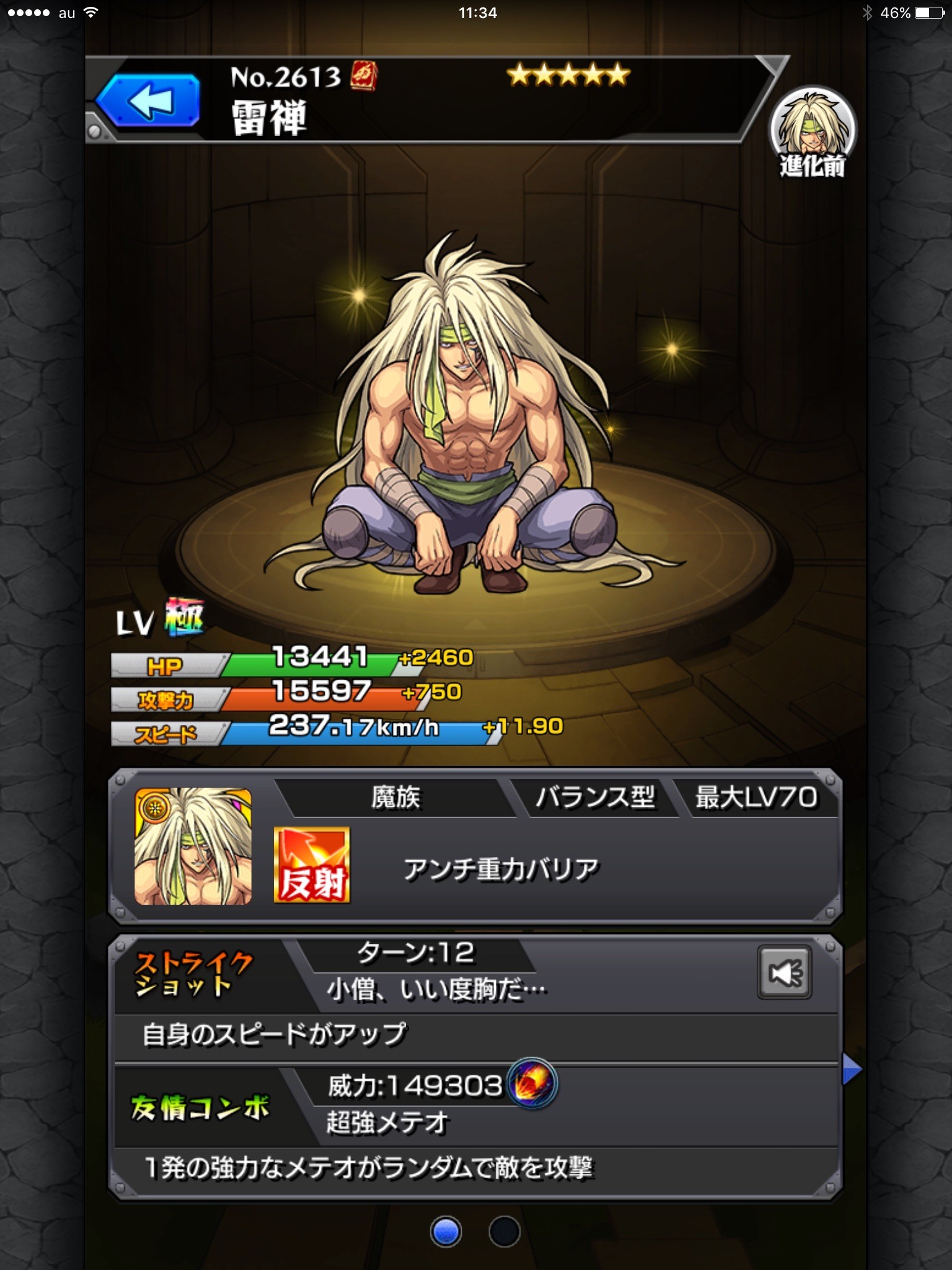 「雷禅」のみ神化と進化の両方あり、あとの2体は進化のみです。