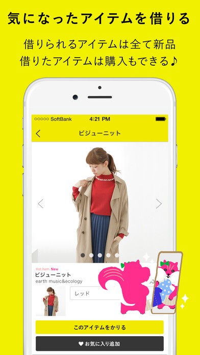 アプリ内で服の写真を確認して、気になるアイテムを見つけたら、さっそく「このアイテムをかりる」をタップしてレンタルを行ってみましょう。写真はさまざまなモデルさんとコーデで掲載されているので、見ているだけでも楽しくなってしまうアプリだといえますね。